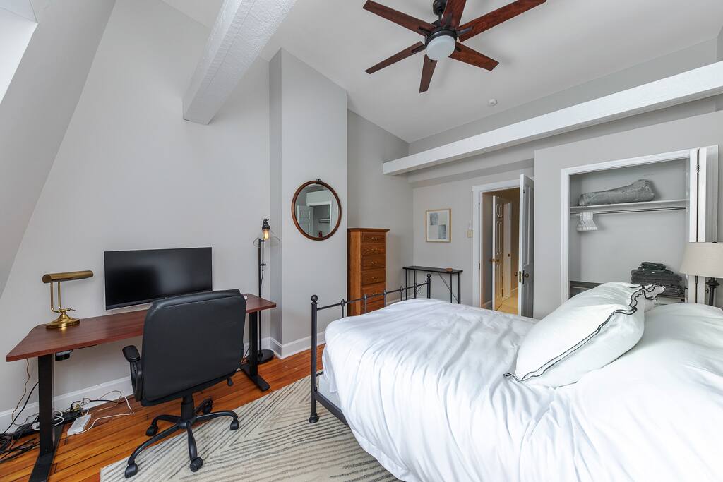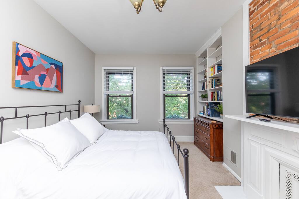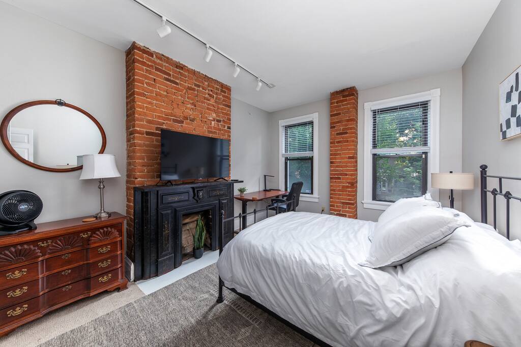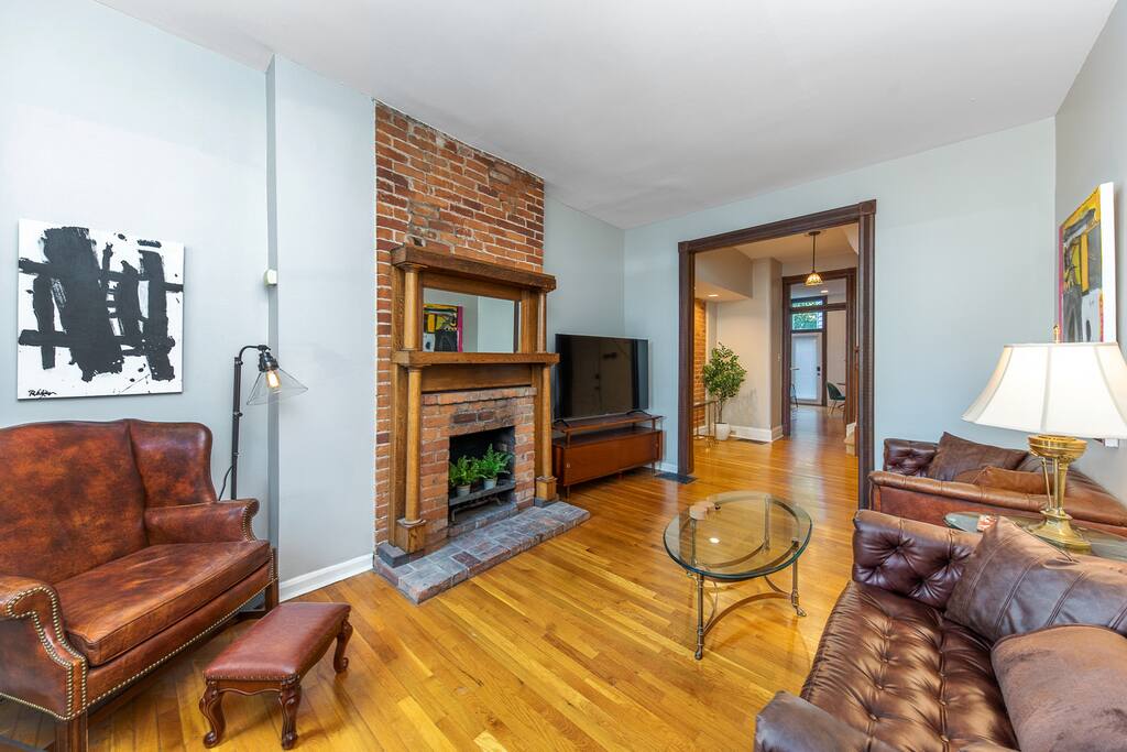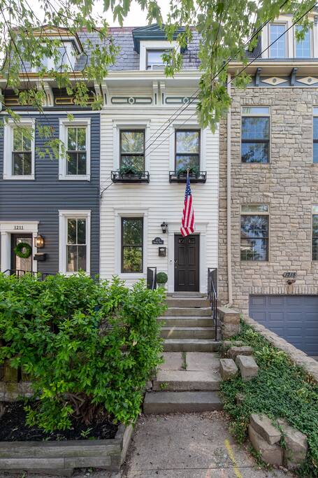 Enjoy a stylish stay at this centrally located historic home nestled in the picturesque neighborhood of Mt. Adams, Ohio. This fully furnished residence features three bedrooms, two newly remodeled bathrooms, and a living area with a fully equipped kitchen. Guests can enjoy a BBQ on the private patio or take a short walk to explore the charming historic neighborhood. Head down the hill to nearby attractions & downtown Cincinnati, catch a Reds game, or enjoy dinner & drinks in Over-the-Rhine.