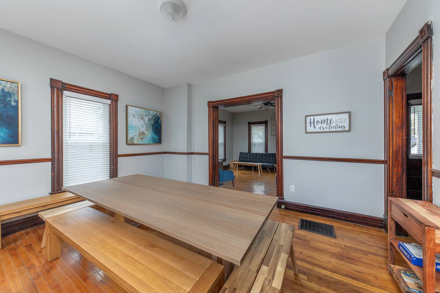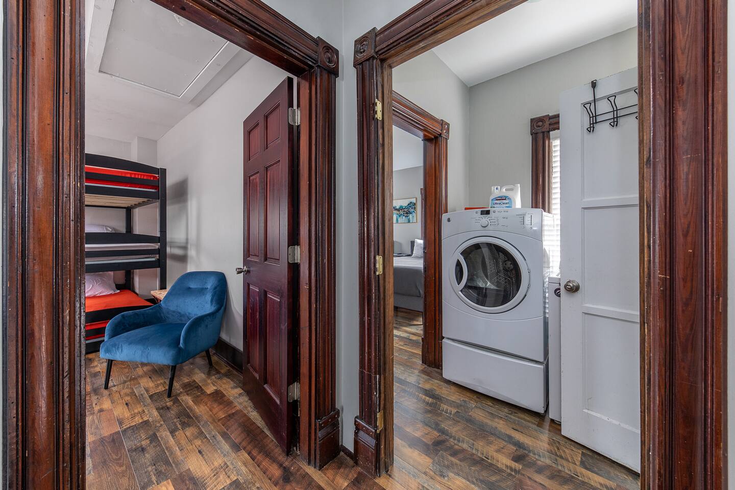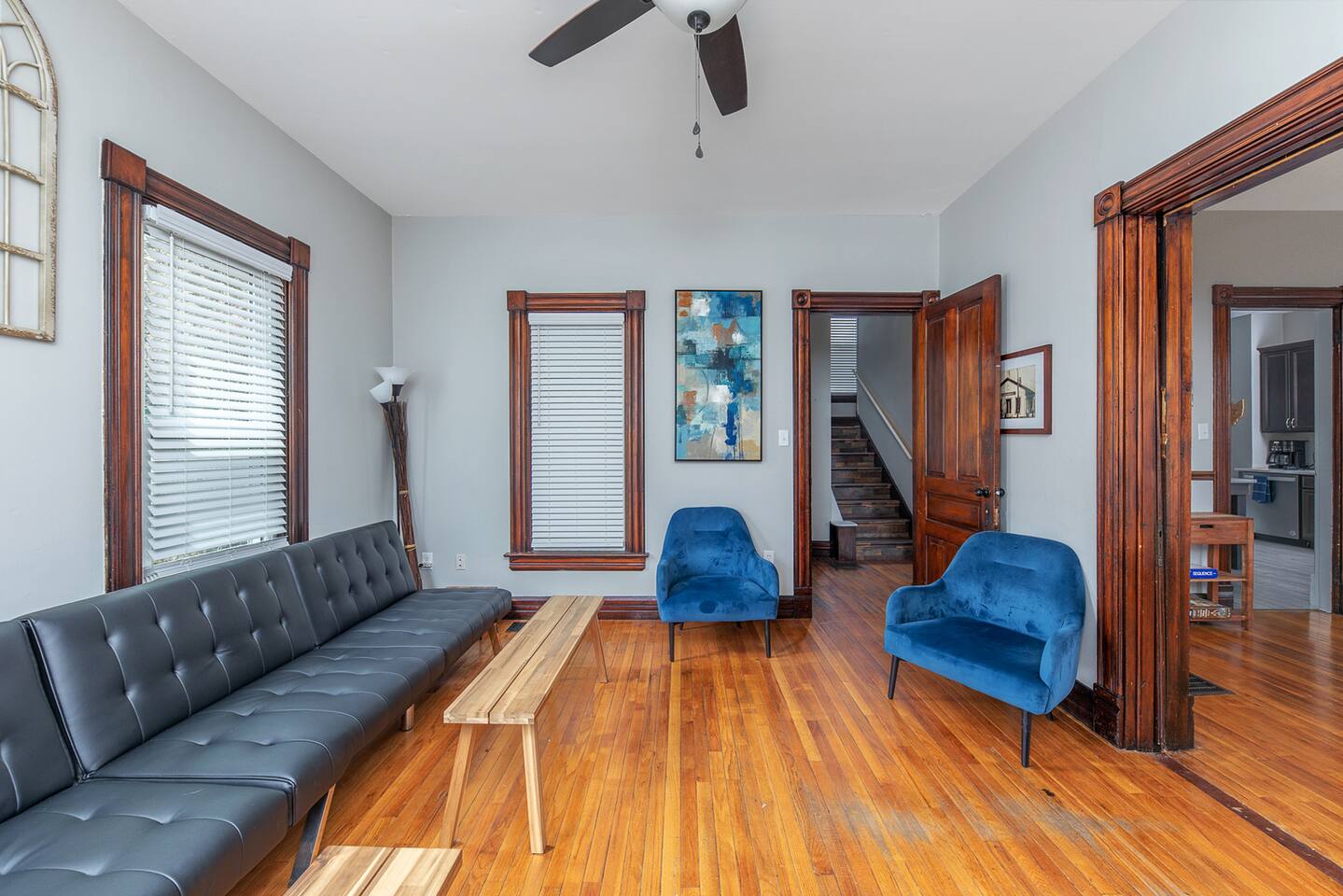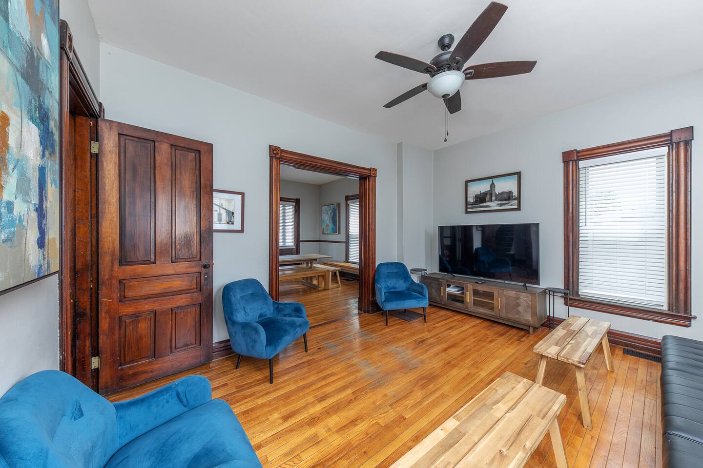 This 2-story historic home offers all there is to have in a Prime Location! Family and Friends, you will find this house to be fully accommodating. - There is ample street parking out front - 2 full bathrooms - State of the art fully equipped kitchen - 3 bedrooms (3 Queens, 4 triple bunk beds) - Fully Stocked Kitchen - Washer/Dryer - Latest features and smart technologies - Smart TV - High speed wifi - Smart Fridge - Smart Locks for Access