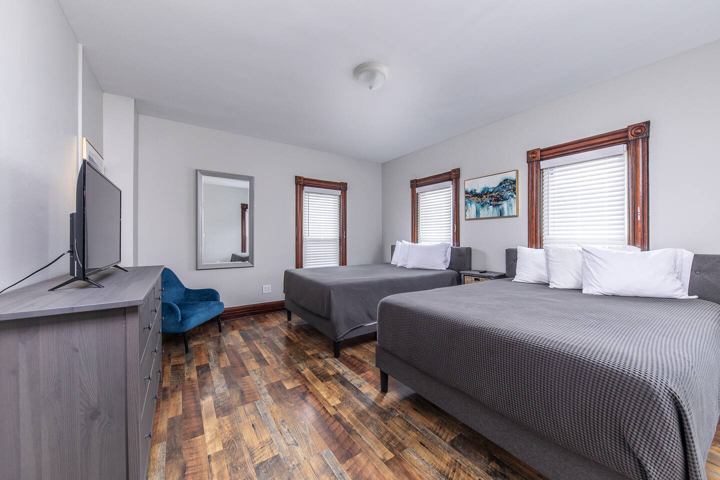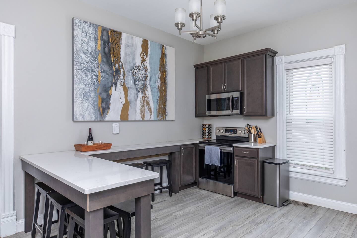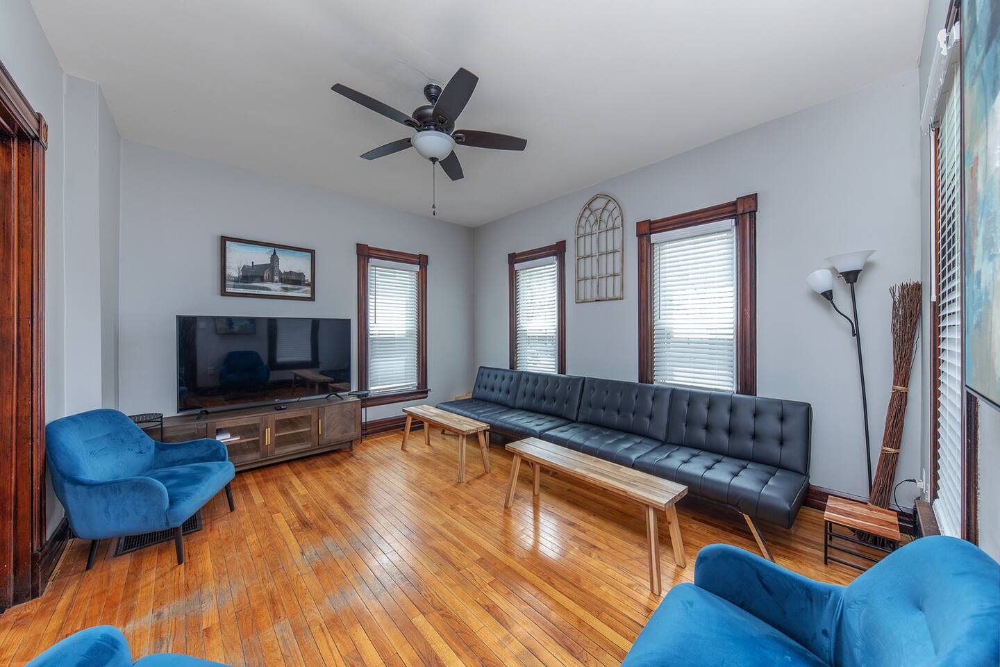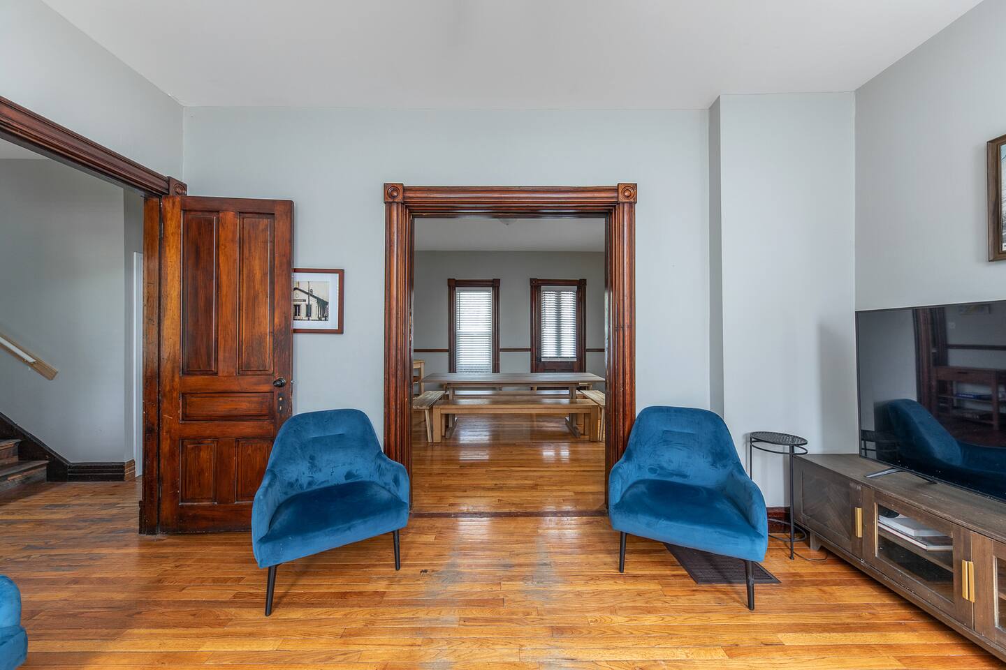 This 2-story historic home offers all there is to have in a Prime Location! Family and Friends, you will find this house to be fully accommodating. - There is ample street parking out front - 2 full bathrooms - State of the art fully equipped kitchen - 3 bedrooms (3 Queens, 4 triple bunk beds) - Fully Stocked Kitchen - Washer/Dryer - Latest features and smart technologies - Smart TV - High speed wifi - Smart Fridge - Smart Locks for Access