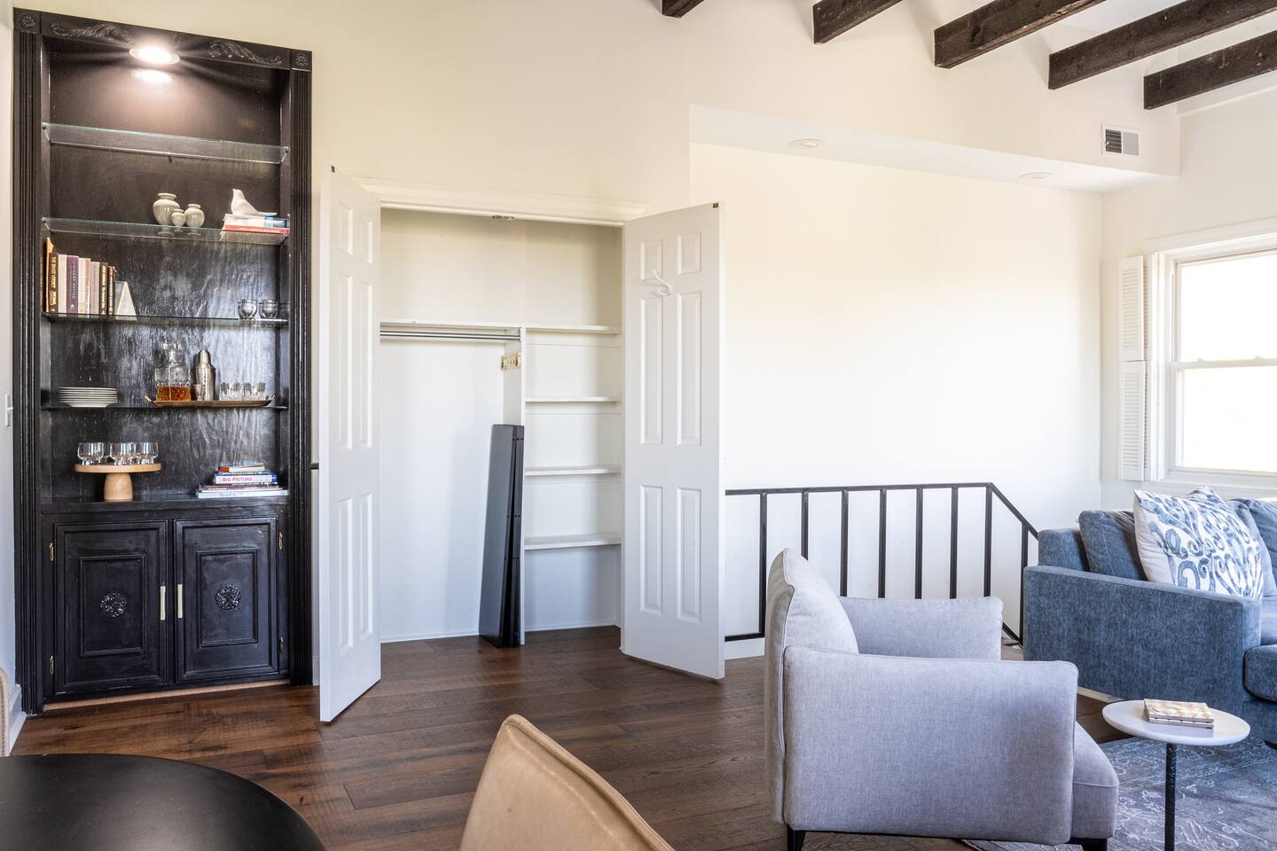 This home is the top floor of a 3 story building. You come up the steps into an open floor plan with lots of light and amazing views. There are two nicely appointed bedrooms, each with a queen bed and luxury linens. The dining table seats 6 with an amazing entertainment space. Our place invites you to enjoy a beverage, relax, and choose from a selection of great records to set the tone of your stay