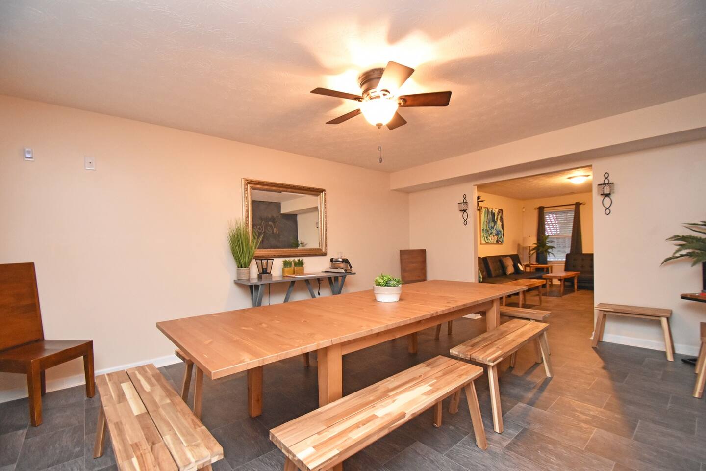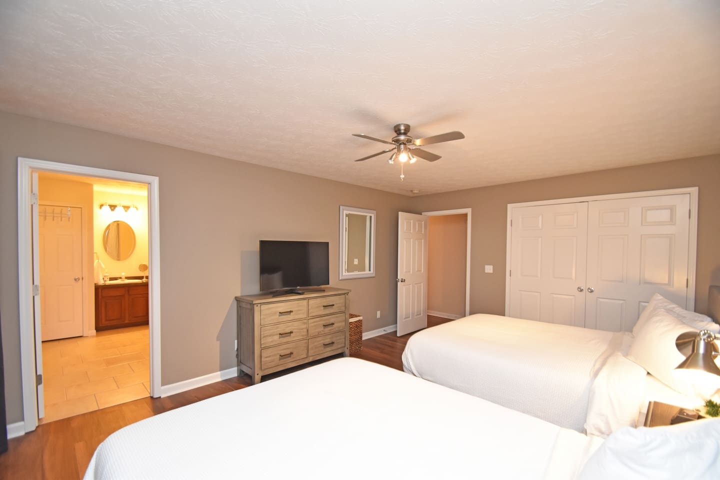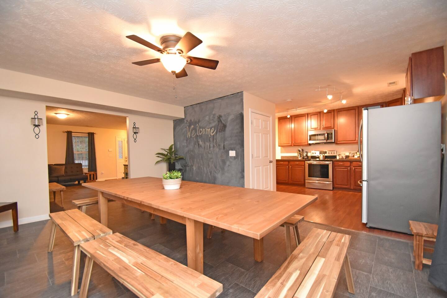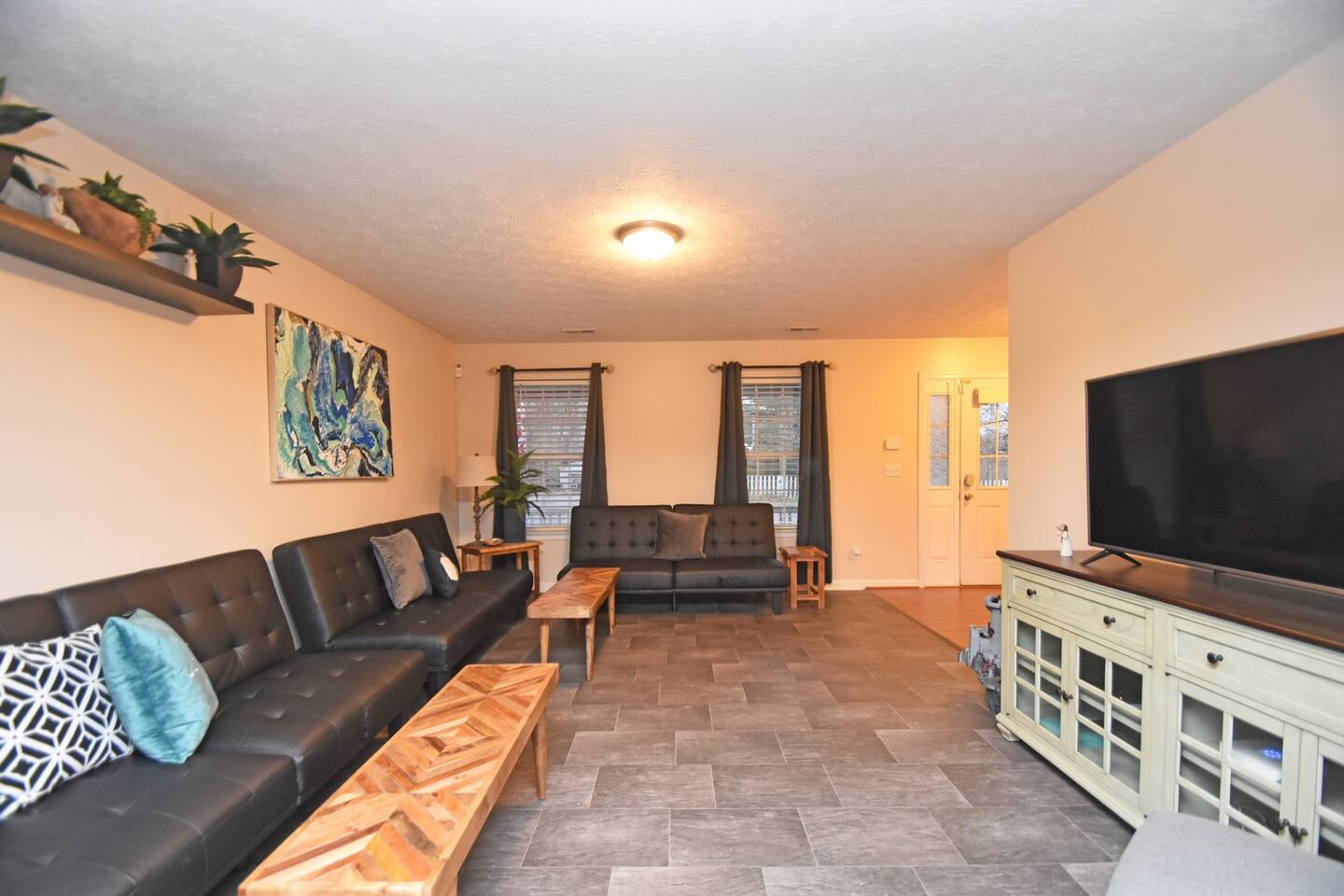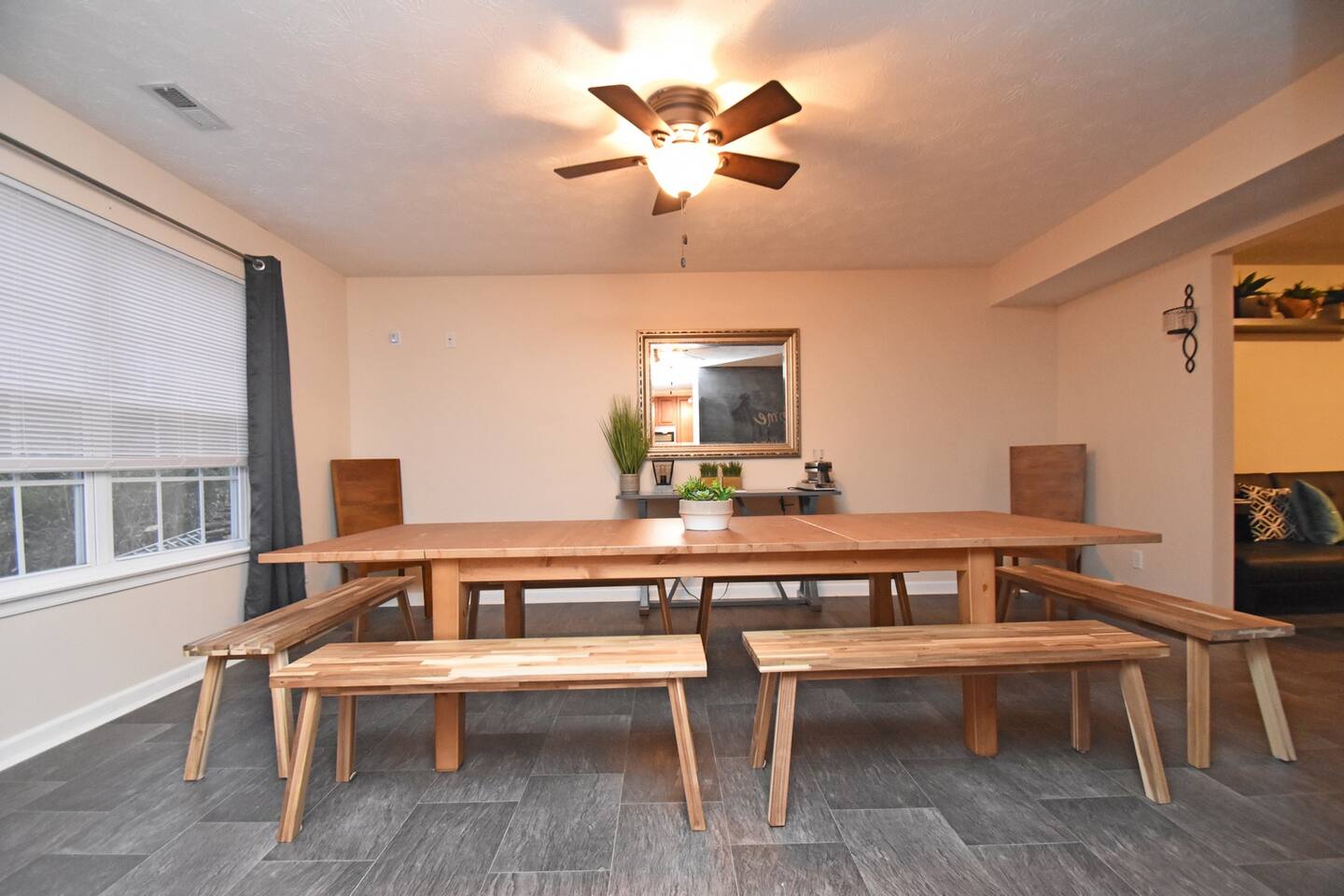 This home features four oversized bedrooms, a larger kitchen with modern appliances, a supersized dining room and two living spaces so you can spread out. You will have access to the entire home (minus a couple locked supply closets and the garage which is used for storage).