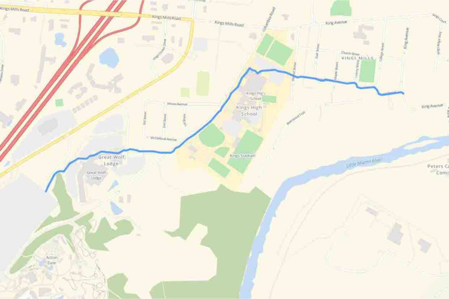 Kings Mills, Ohio was established in 1884 as a company town for the King Powder Company, and the Peters Cartridge Company which ceased operations in 1944. In 1970 the newly formed amusement park, Kings Island (named after Coney Island and Kings Mills) moved directly south of the area. Shortly after that, the College Football Hall of Fame was opened in Kings Mills but closed down and moved to South Bend, Indiana in 1995. Today this thriving little town in the cross-section of several northern Cincinnati suburbs.